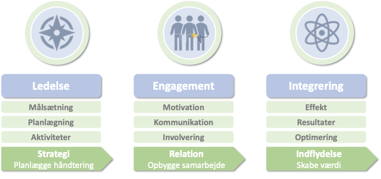 En struktureret tilgang sikrer, at både indflydelsesrige og perifere stakeholders identificeres, engageres og integreres med den rette balance mellem indsigt, dialog og involvering.